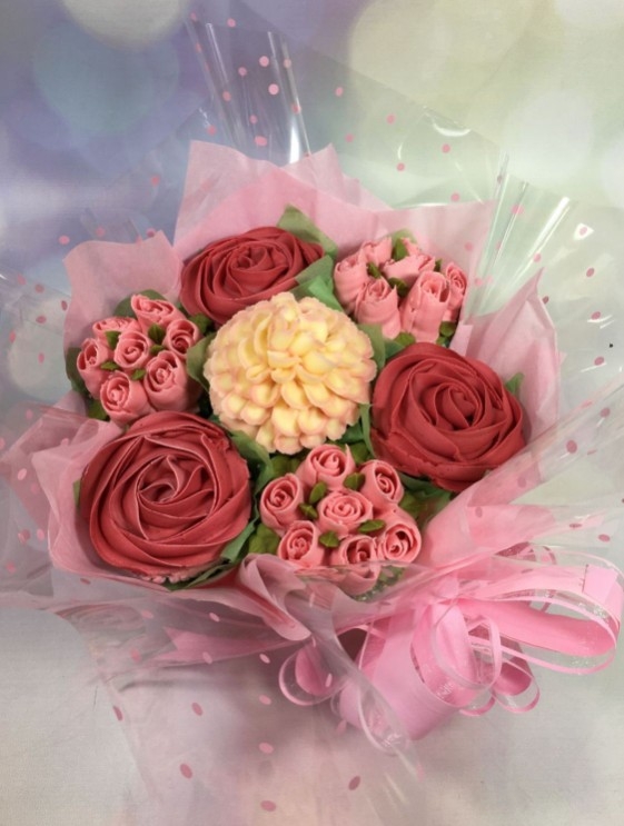 Niveau 2  : Confection de cupcakes & crème, perfectionnement des techniques de pochage, travail des volumes, dégradés et textures pour des fleurs plus réalistes et détaillées. 3h