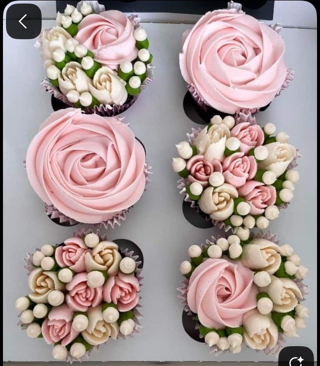 Niveau 1  : Confection de la base à cupcakes & crème, initiation aux fleurs traditionnelles avec des douilles standard et russes, idéal pour apprendre les bases du pochage floral.2h30
